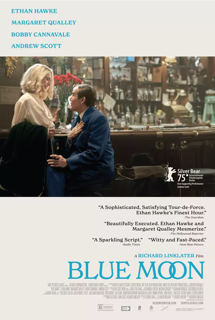 Pouco habitual em sua carreira, 2025 marca um retorno meio nostálgico de Richard Linklater a figuras do passado, a fim de encená-las por suas próprias regras. Blue Moon foi o primeiro de dois projetos, exibido no Festival de Berlim e seguido por Nouvelle Vague, que estreou na competição em Cannes. O curioso é como o cineasta olha para Lorenz Hart (Ethan Hawke), famoso compositor estadunidense dos anos 1930 e 40, que tem como música mais famosa a que dá título ao filme, exibindo primeiro sua morte, sozinho em um beco pouco iluminado, para, em seguida, relembrar a sua vida.